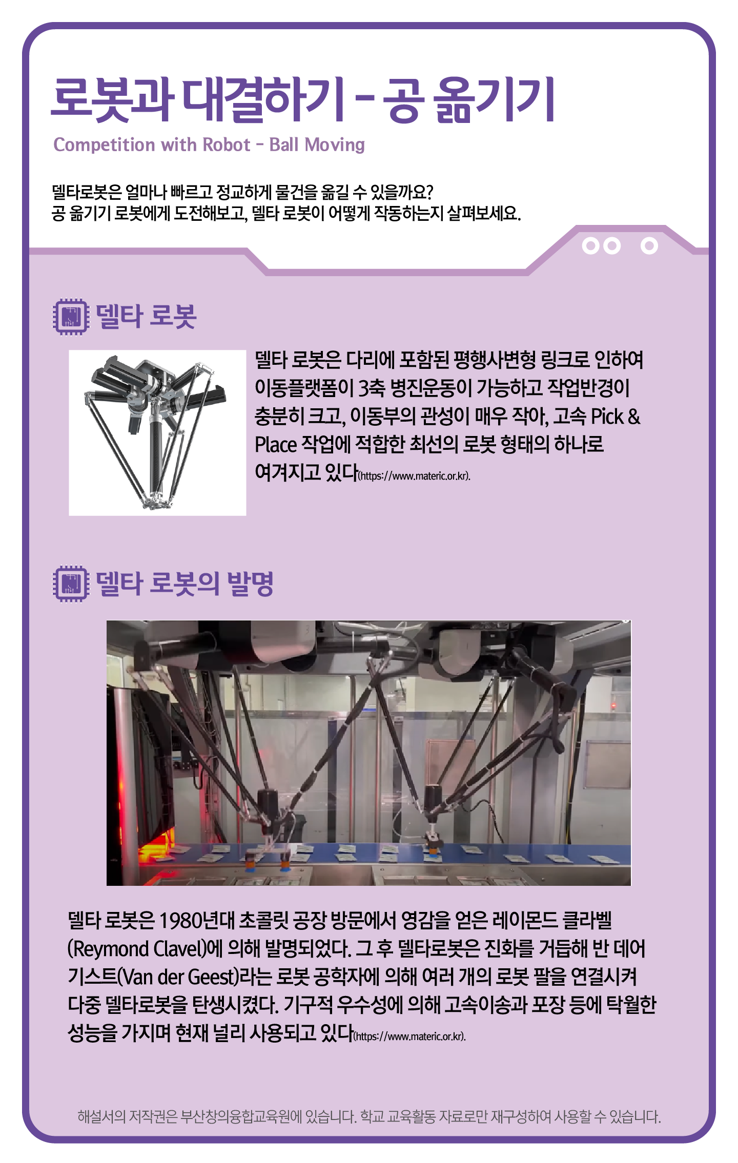 델타로봇은 얼마나 빠르고 정교하게 물건을 옮길 수 있을까요? 공 옮기기 로봇에게 도전해보고, 델타 로봇이 어떻게 작동하는지 살펴보세요.